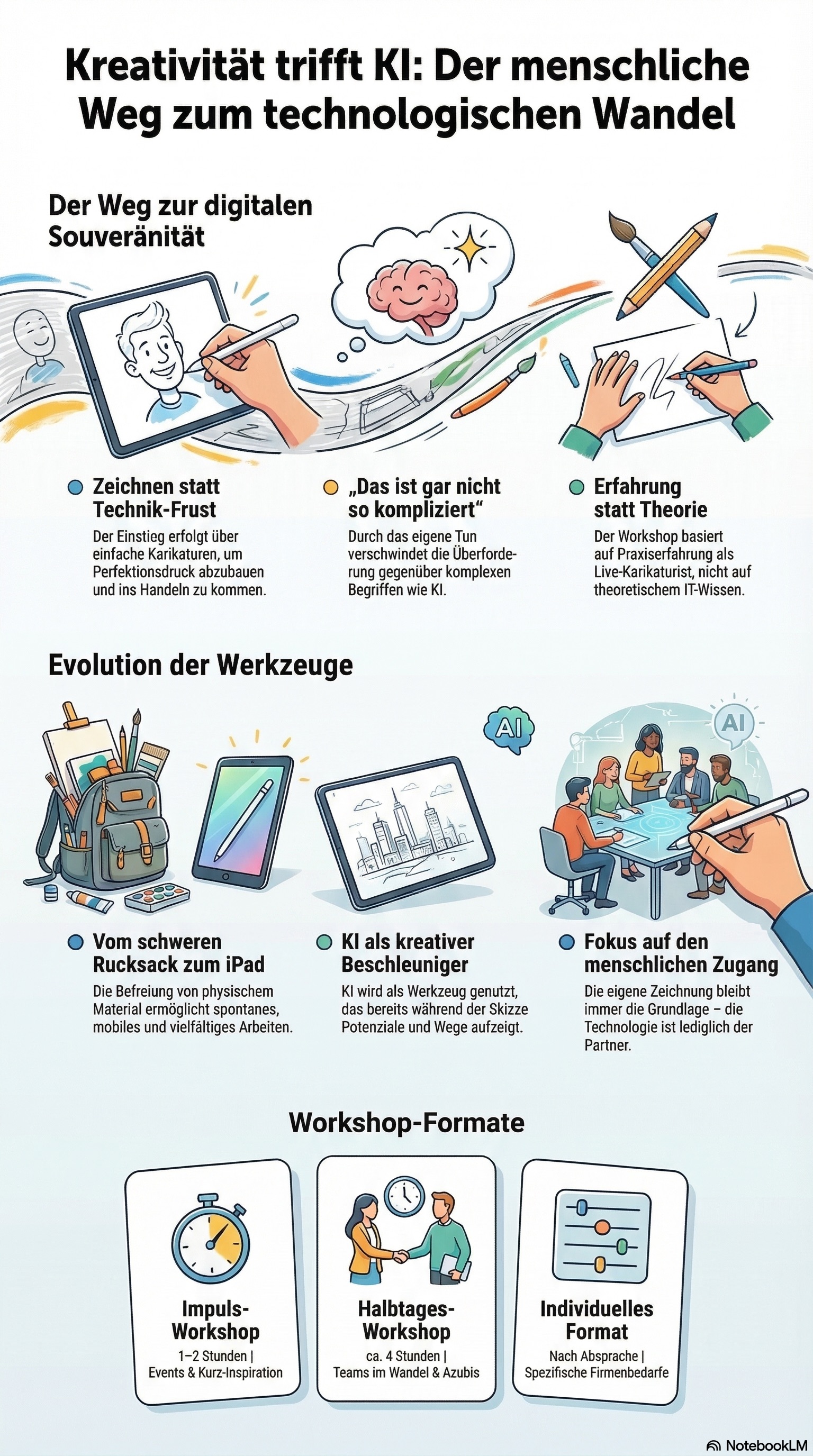 Als Live-Karikaturist arbeite ich seit Jahren direkt mit Menschen – spontan, analog, digital und inzwischen auch mit KI.